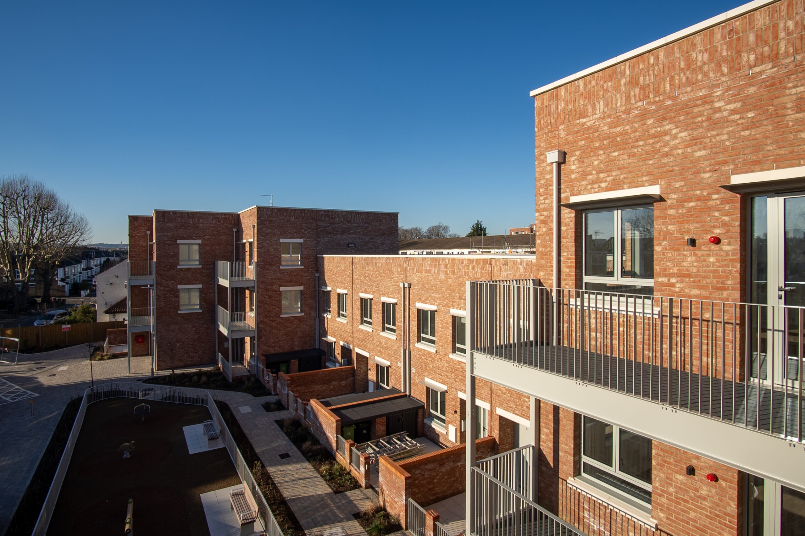 Our proposals for this infill site replace 11 derelict bungalows and the adjoining disused community hall with 12 flats and six family homes for social rent.